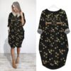 Features: Roll-up long sleeves, round neckline, casual pullover style, oversized loose fit, midi knee length, with pockets at both sides.