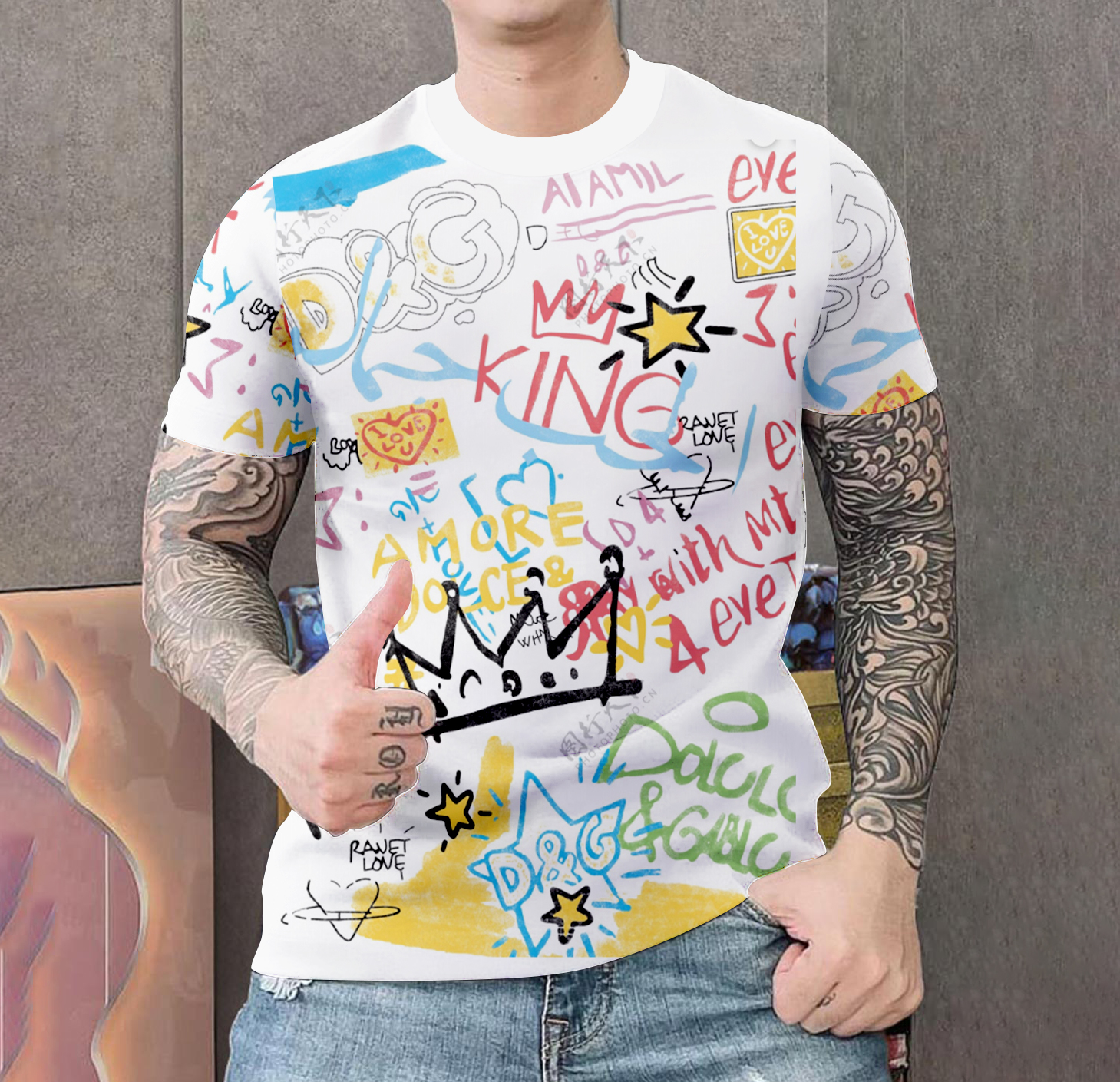Quarter-turned body to eliminate the center crease. The design is printed with new age printing technology, direct to garment. It is printed with a water â soluble and eco â friendly ink.