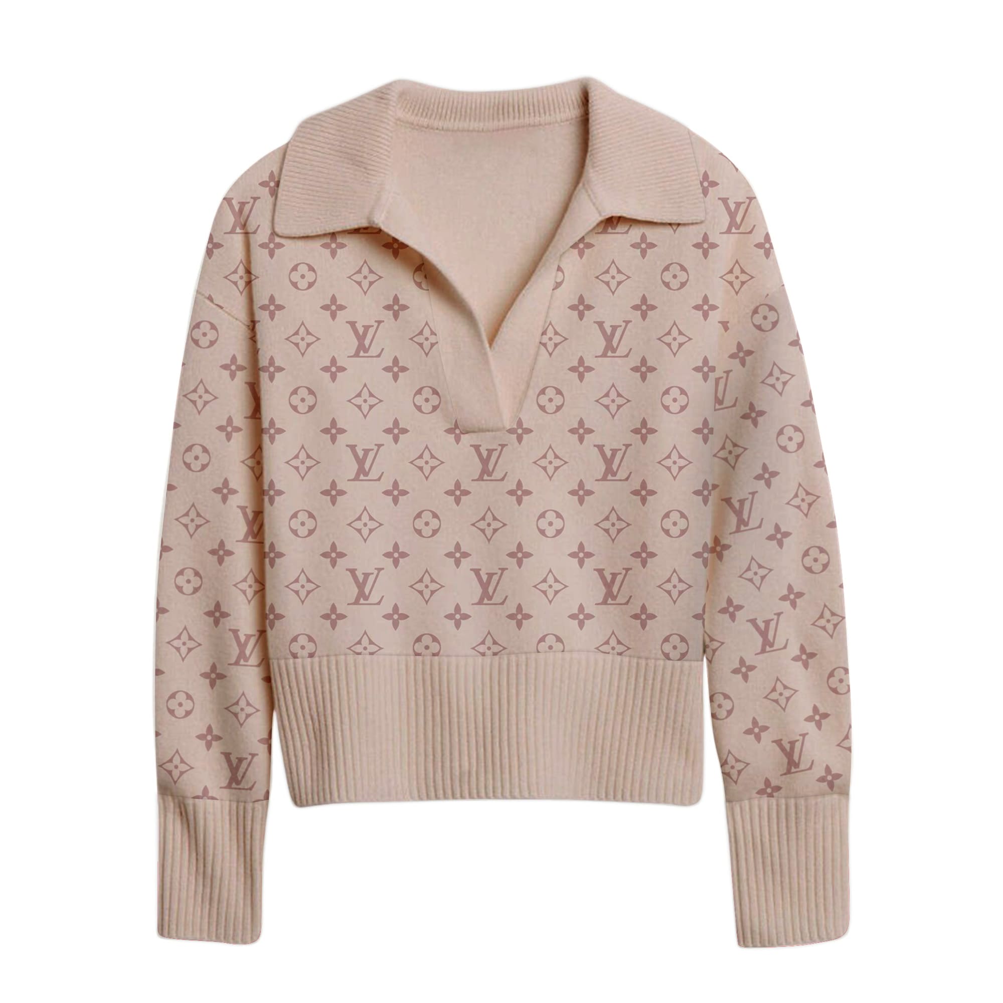 Category: LV Women's Big V Lapel Long Sleeve Sweate
