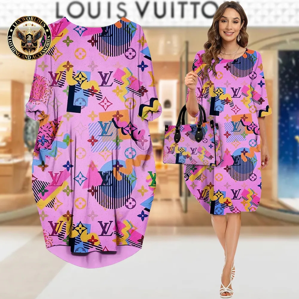 Set Pocket Dress & Handbag Luxury Brand